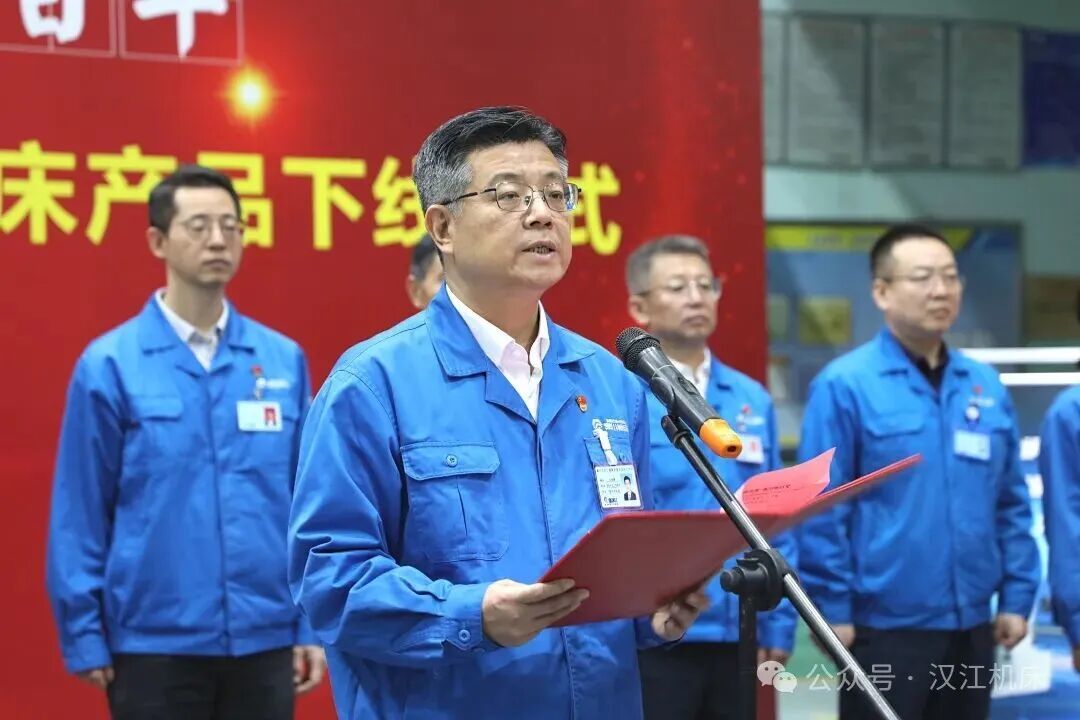 下線儀式上,馬旭耀董事長與全國勞動模范、公司勞模代表侯海峰共同為第31萬臺高端數(shù)控機床揭幕。